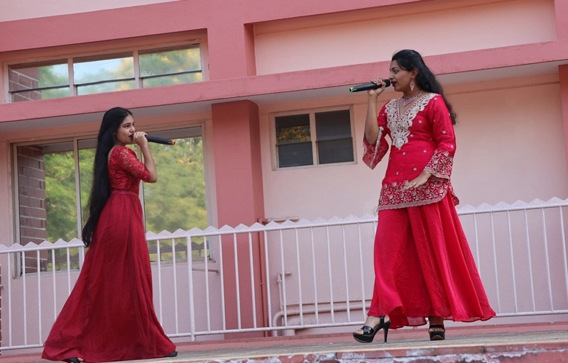 began with a cultural show on the open-air stage. The campus came alive with stalls