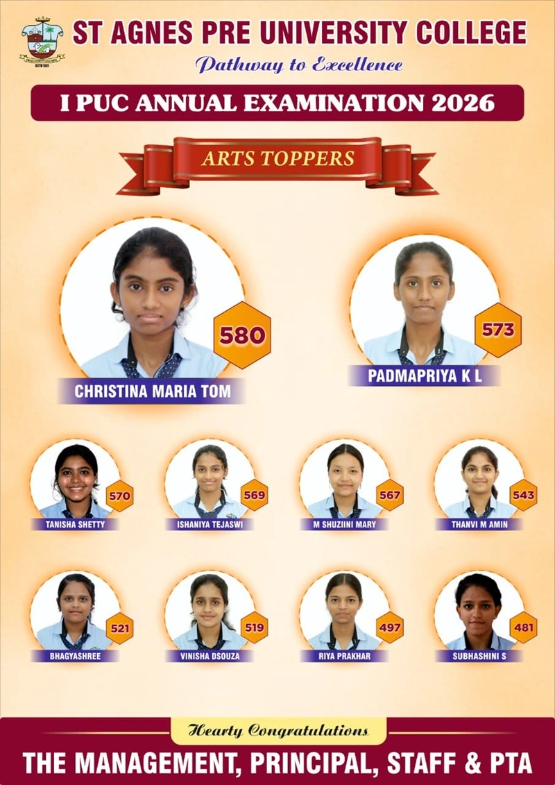 In the Science stream, Dipali D Prasad and Frizel Rishall Fernandes emerged as