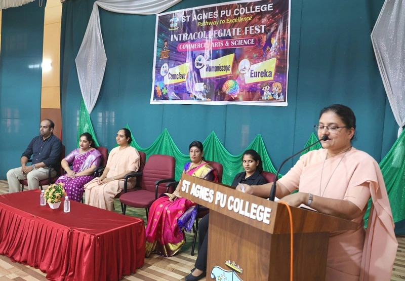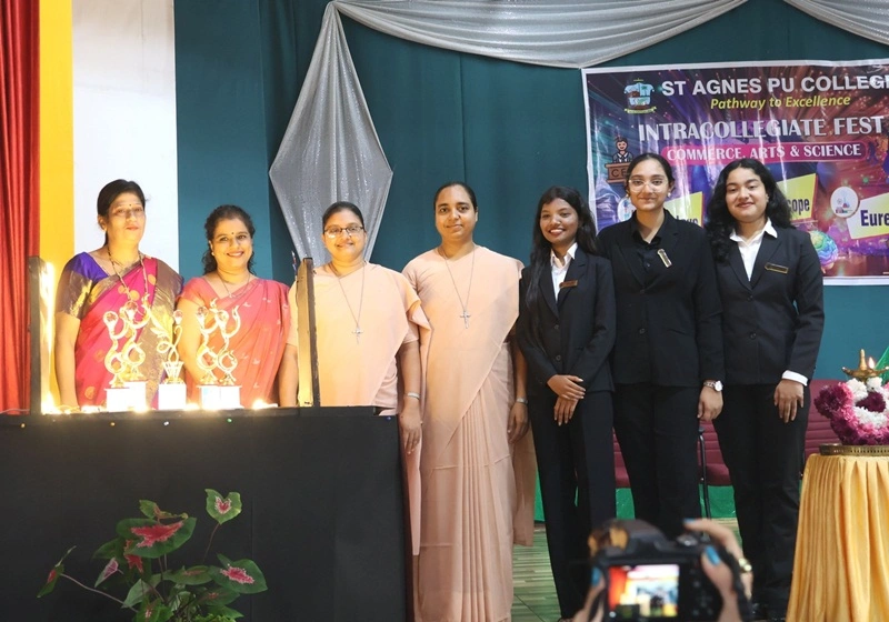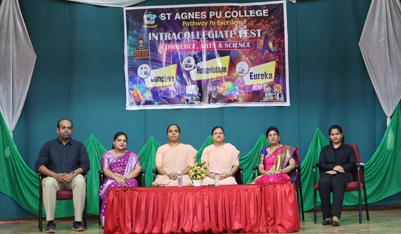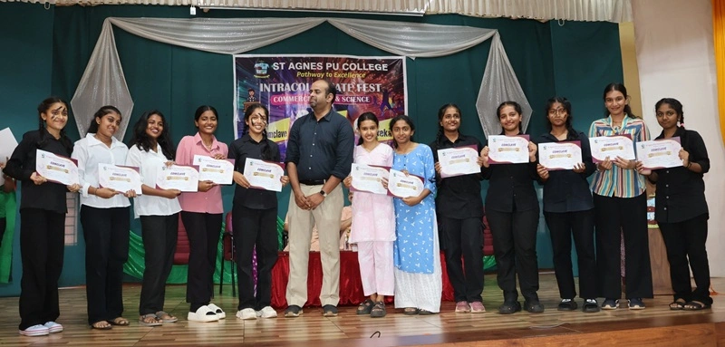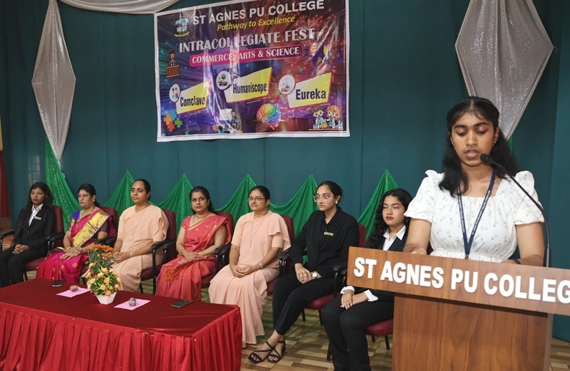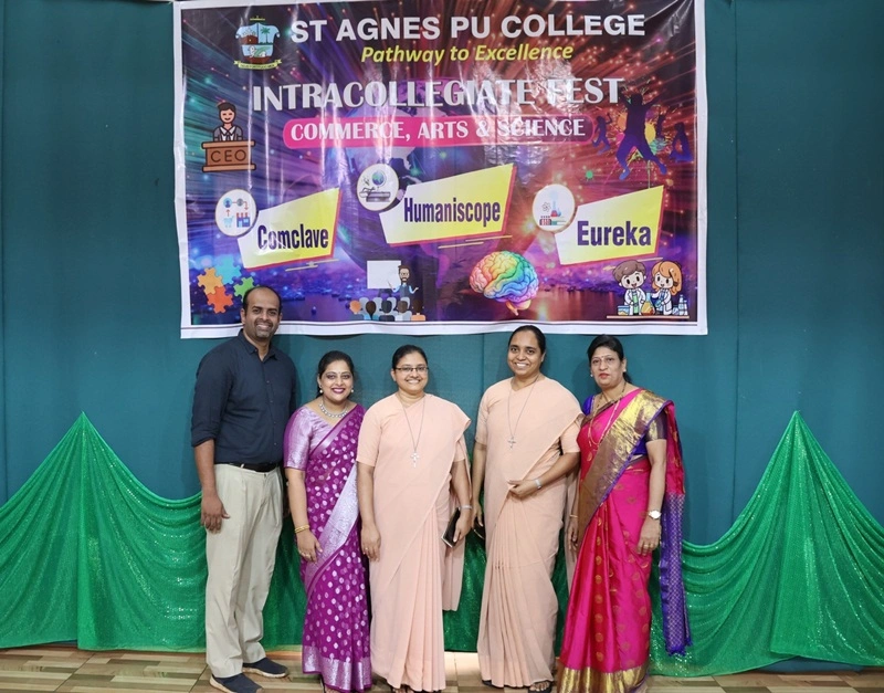 St Agnes PU College organized annual Intra-Collegiate Fest on 19th September 2025 with great zeal and participation, bringing together the vibrant talents of students from all three streams under the banners of Eureka (Science), Comclave (Commerce), and Humaniscope (Arts).