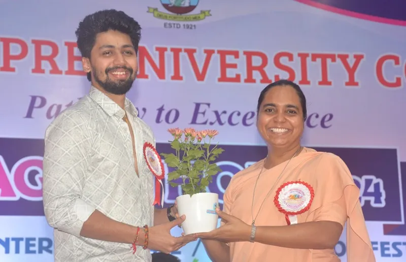 The star- studded celebrations were defined by the irrepressible energy and dynamism of the youthful participants from various schools and colleges. A solemn prayer song and a welcome dance abounding in colour set the tone for the day. This was followed by the ceremonial lighting of the lamp by the dignitaries. In his speech the chief guest emphasized the importance of creativity and innovation. He encouraged the participants to harness their potential and strive for excellence. Education, he said is a thing worth striving for, it would help spring you forward in the world. Mr Siddharth Shetty addressed the students and said that Pre University is the bridge to a buoyant future. Ms Wencita Dias praised her alma mater and spoke about how integral communication skills are in a world where English is the lingua franca.