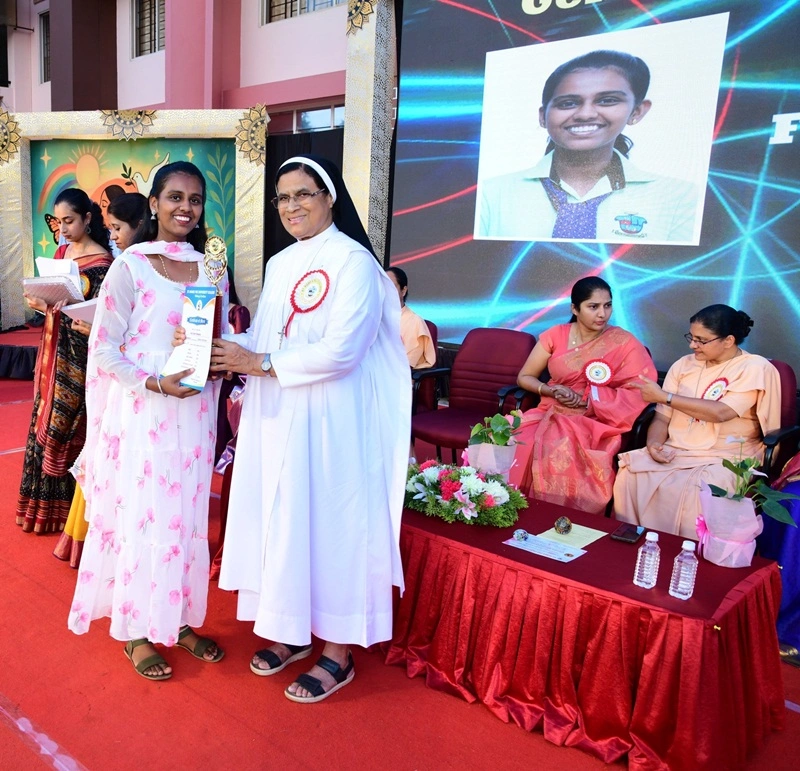 Maria Roopa and The principal- Sr Norine DSouza honoured exemplary students excelled