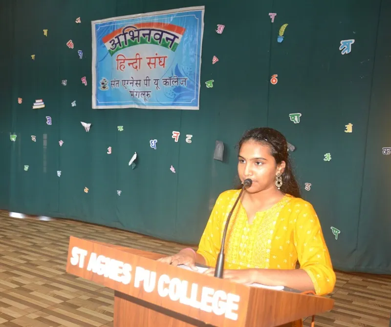 A Hindi Day programme was celebrated at St Agnes PU College, Mangalore. Mr Rohith Reda, Hindi Officer, Geological Survey of India graced the occasion as the chief guest. The programme comprised of an invocation, humorous skit, quiz and a mesmerizing dance performance. Prizes were given away to the prize winners of skit writing, chart making and creative writing competitions.