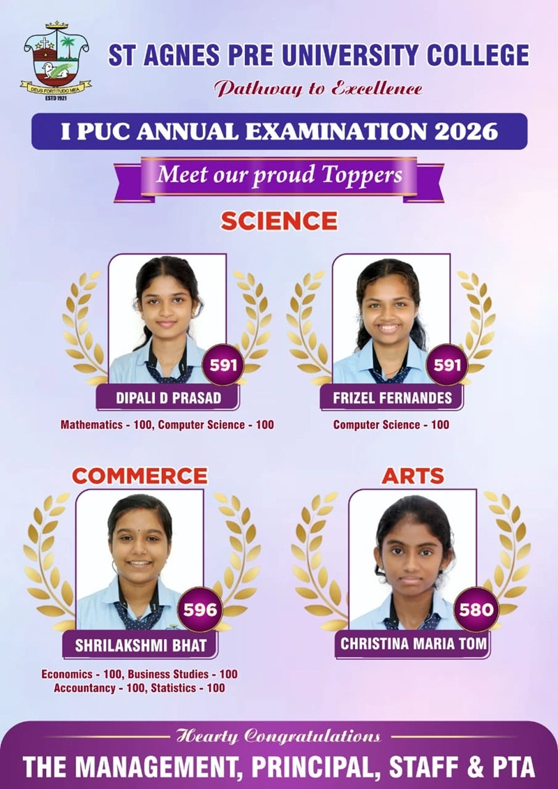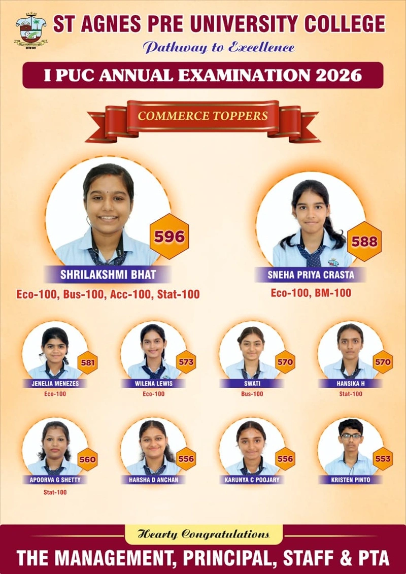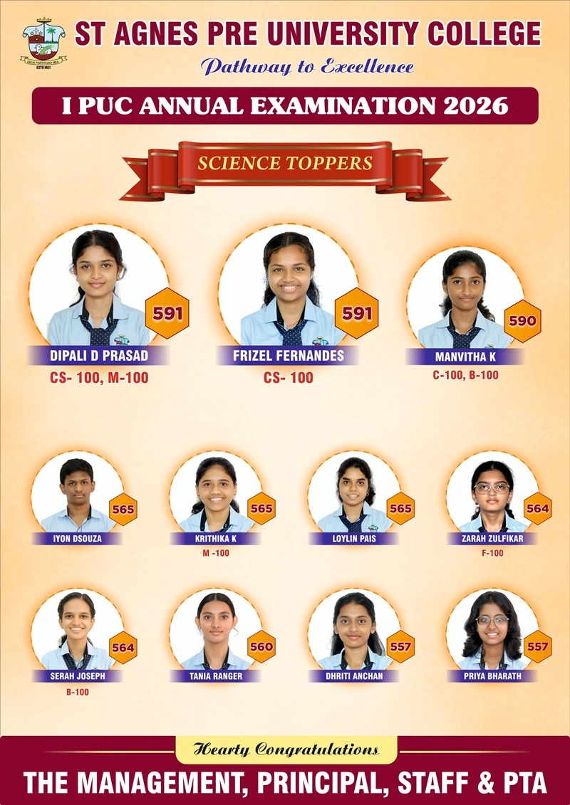 In the Science stream, Dipali D Prasad and Frizel Rishall Fernandes emerged as