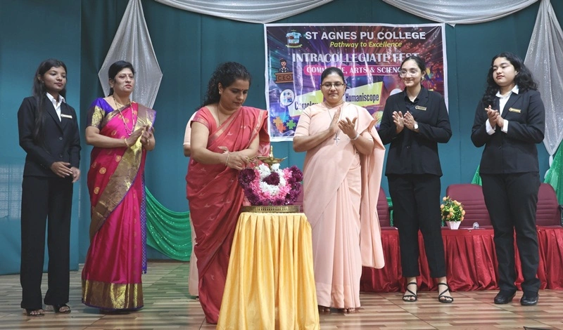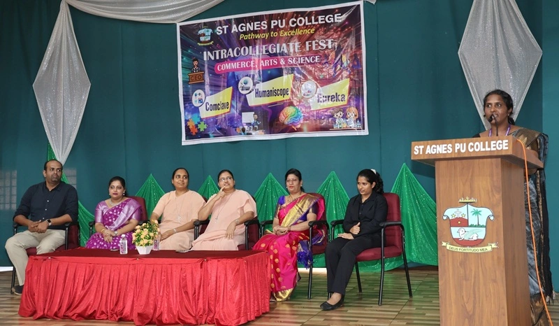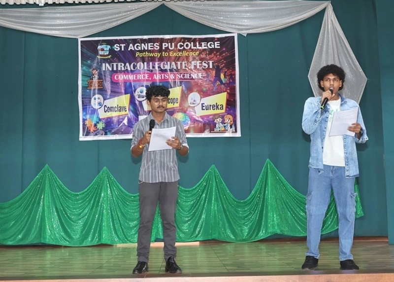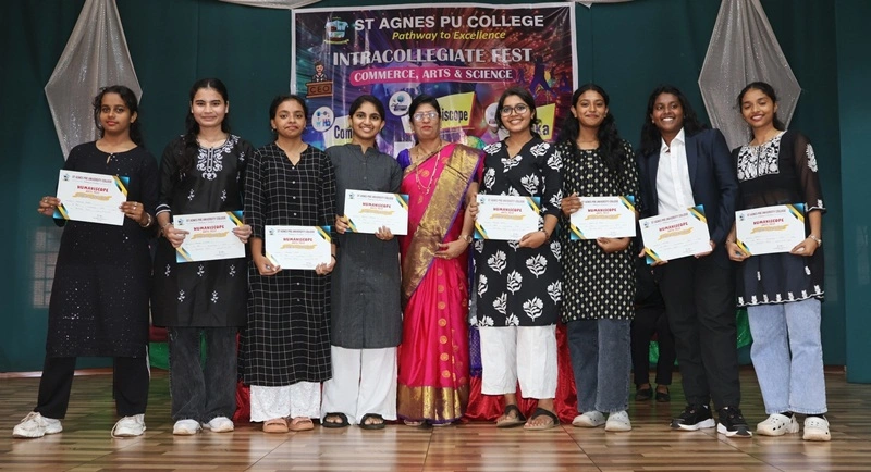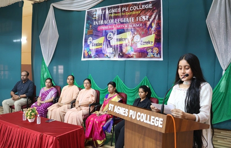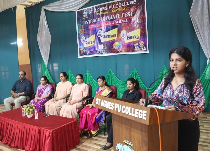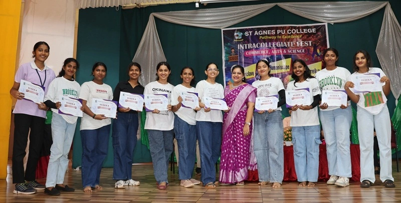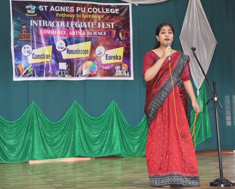 St Agnes PU College organized annual Intra-Collegiate Fest on 19th September 2025 with great zeal and participation, bringing together the vibrant talents of students from all three streams under the banners of Eureka (Science), Comclave (Commerce), and Humaniscope (Arts).