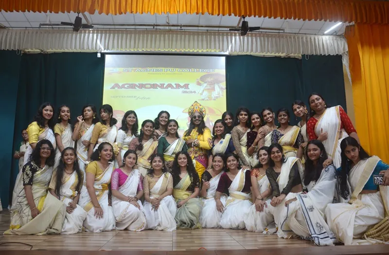 St Agnes P U College celebrated Onam on the 14 September 2024 amidst much fanfare. The celebrations started in the morning as the students gathered to prepare the traditional Pookalam, a colorful flower carpet. The pookalam was designed with intricate pattern and various flowers were used to create the design adding the beauty and festivity of the day. The celebration was inaugurated by the principal, vice principal, staff and a student representative with the lighting of the lamp. The students performed a mesmerizing Thiruvathira Kali dance reflecting the grace and traditional elegance associated with this dance form. A selection of onam songs was presented, adding a melodious touch to the festivities. Students also displayed their talent and enthusiasm through a series of traditional dance performances. To add a touch of excitement and fun, various spot games were conducted. The arrival of Mahabali was the center of attraction for the students. Students and staff came dressed in traditional Kerala attire enhancing the festive spirit. The program was ably compered by Shreya and Arya.